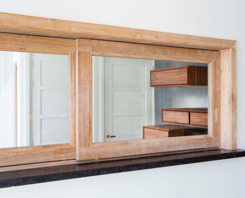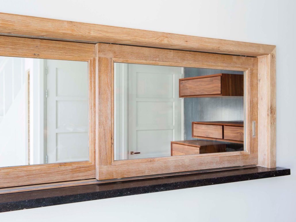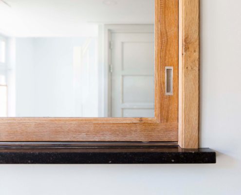 Dit schuifraam is intern geplaatst tussen de keuken en de gang, voor meer licht in het huis.
