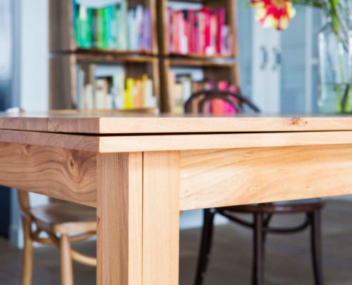Deze tafel is 2,5 x 1 meter. Maar de tafel kan uitgeschoven worden naar een maat van 4,5 x 1 meter. Ruimte genoeg voor 22 gasten!